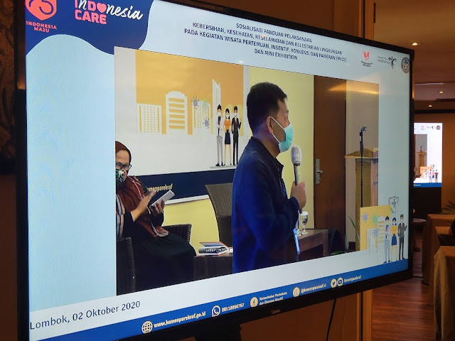 Titik Wahyuni selaku Koordiantor Promosi dan Pendukung Wisata Insentif, Konvensi, dan Pameran (MICE) Kemenparekraf RI pada kegiatan diskusi panduan sosialisasi MICE yang berlangsung di kawasan KEK Mandalika Lombok Tengah Nusa Tenggara Barat selama tiga hari dari 2-4 Oktober 2020.
